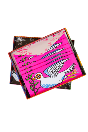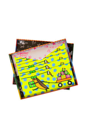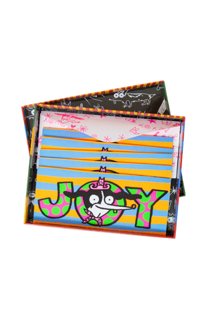 boxed in a glossy, lidded box with 6 matching bubblegum pink doodle envelopes
