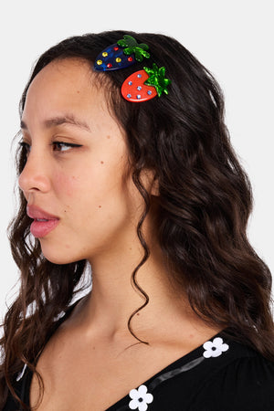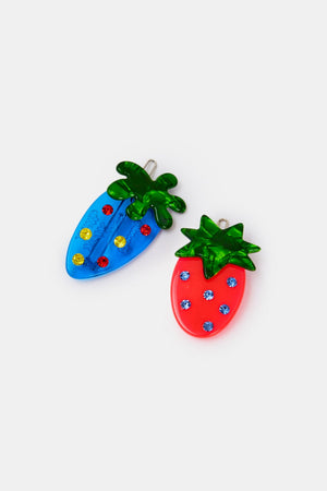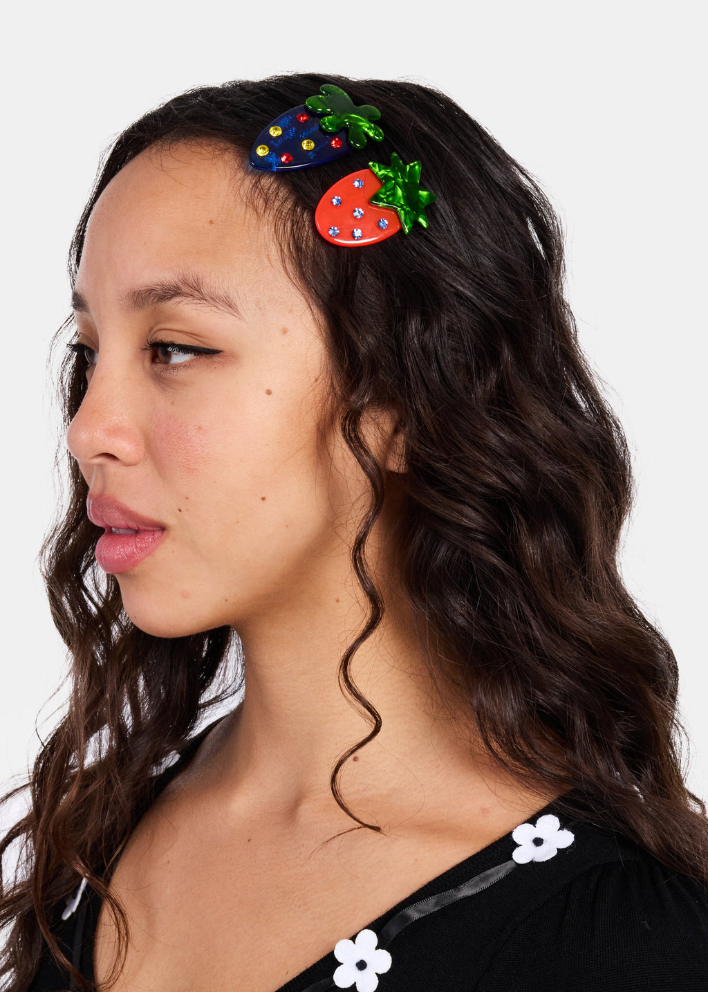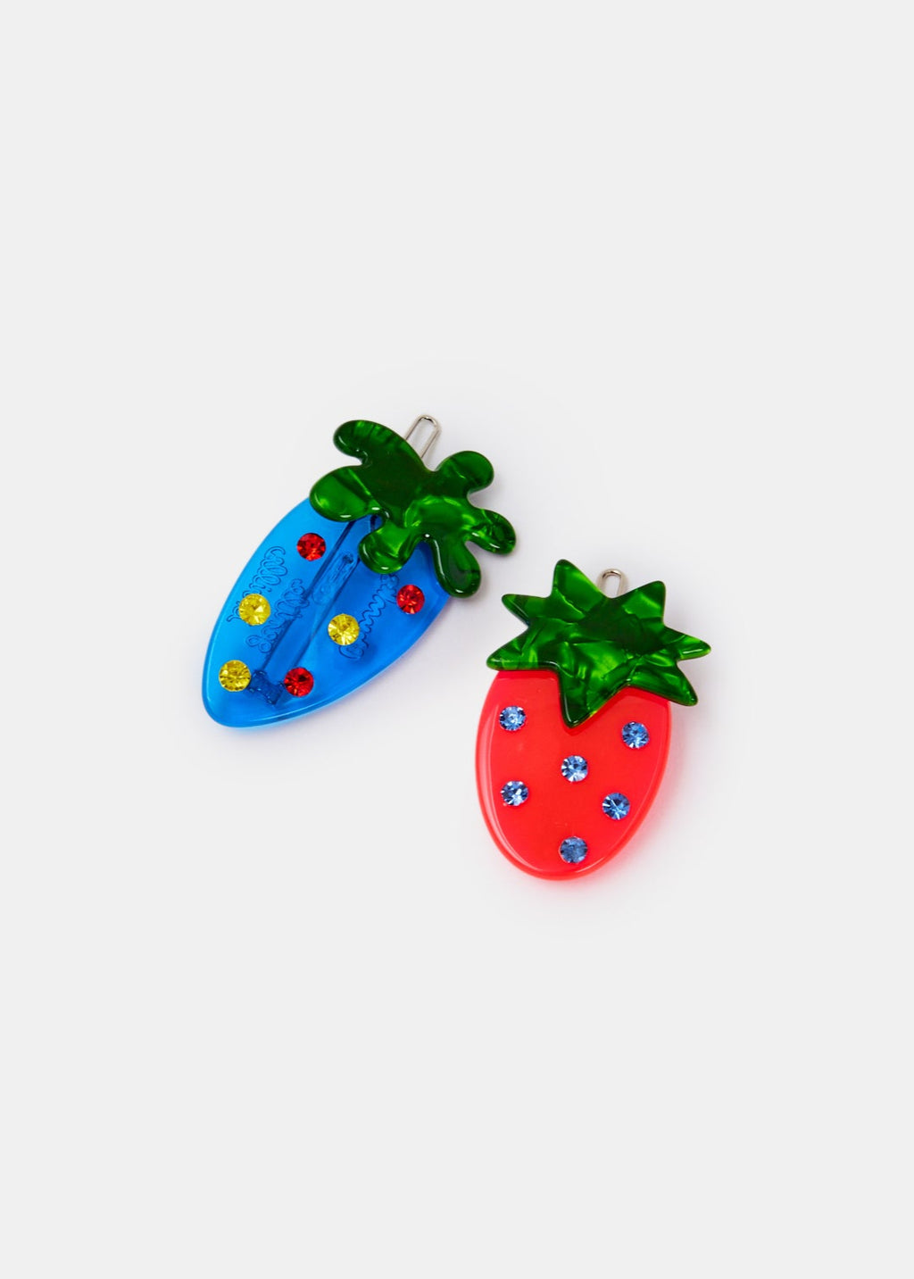 set of 2 strawberry hair clippies produced in collaboration with chunks