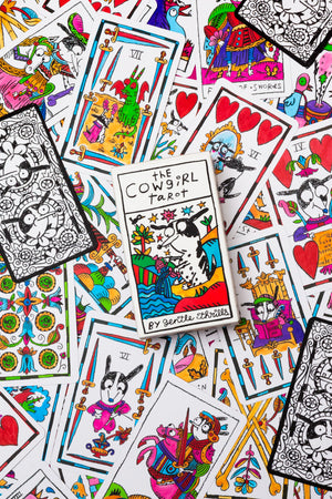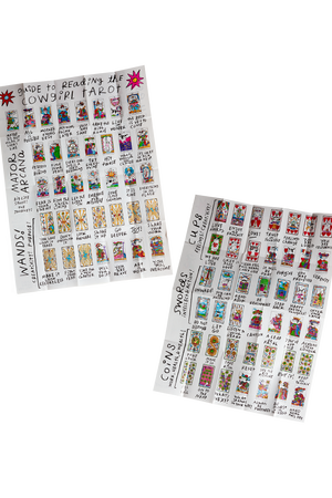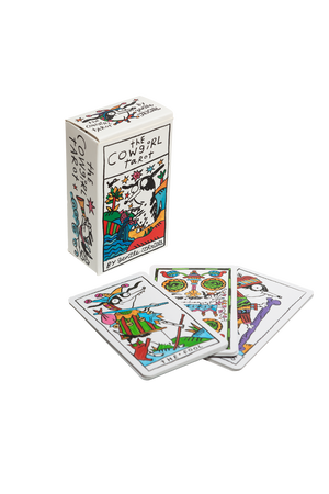 in irreverent homage to one of the most iconic decks of all time! cowgirl is on her fool's journey (alongside her crab, duck, cat, pony, and bird friends).