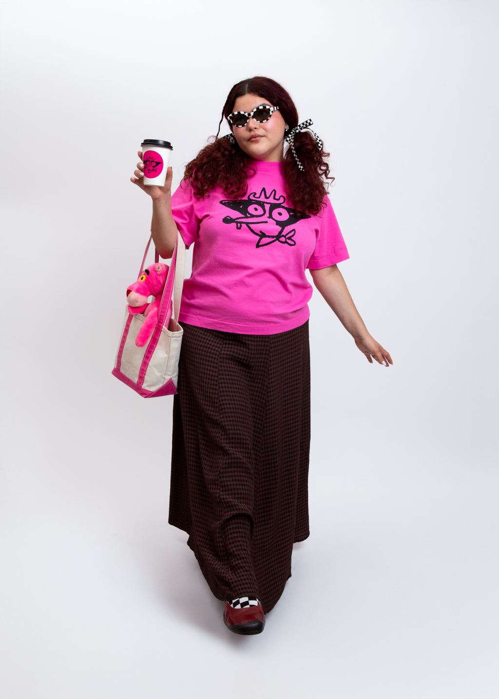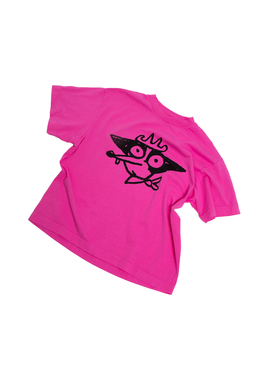 these boxy, recycled cotton tees are dyed, sewn, and printed in los angeles.