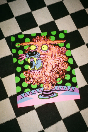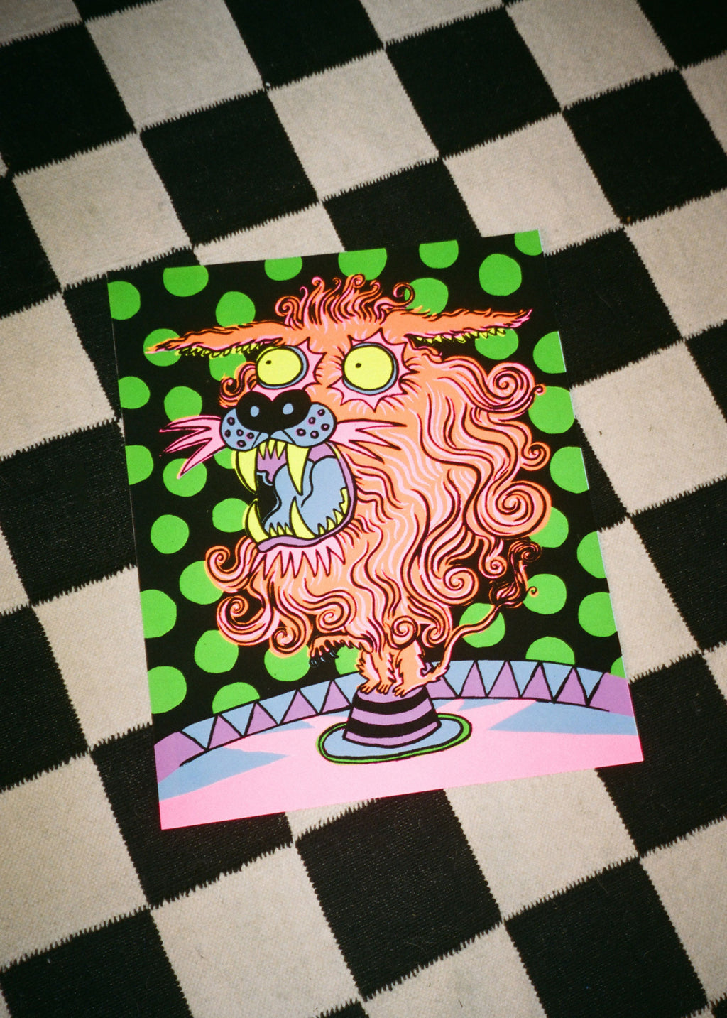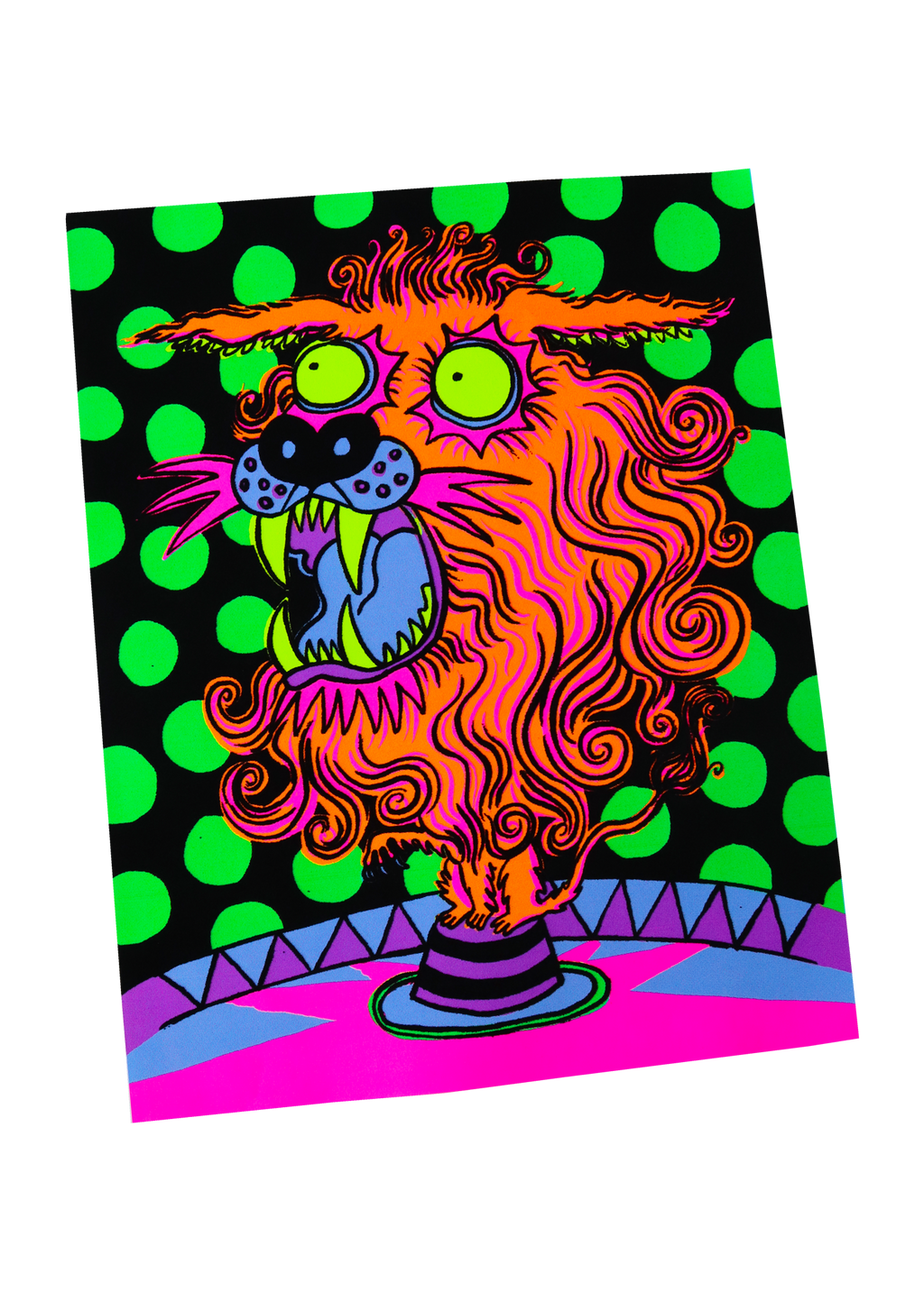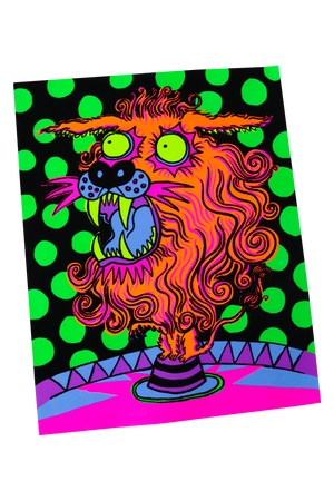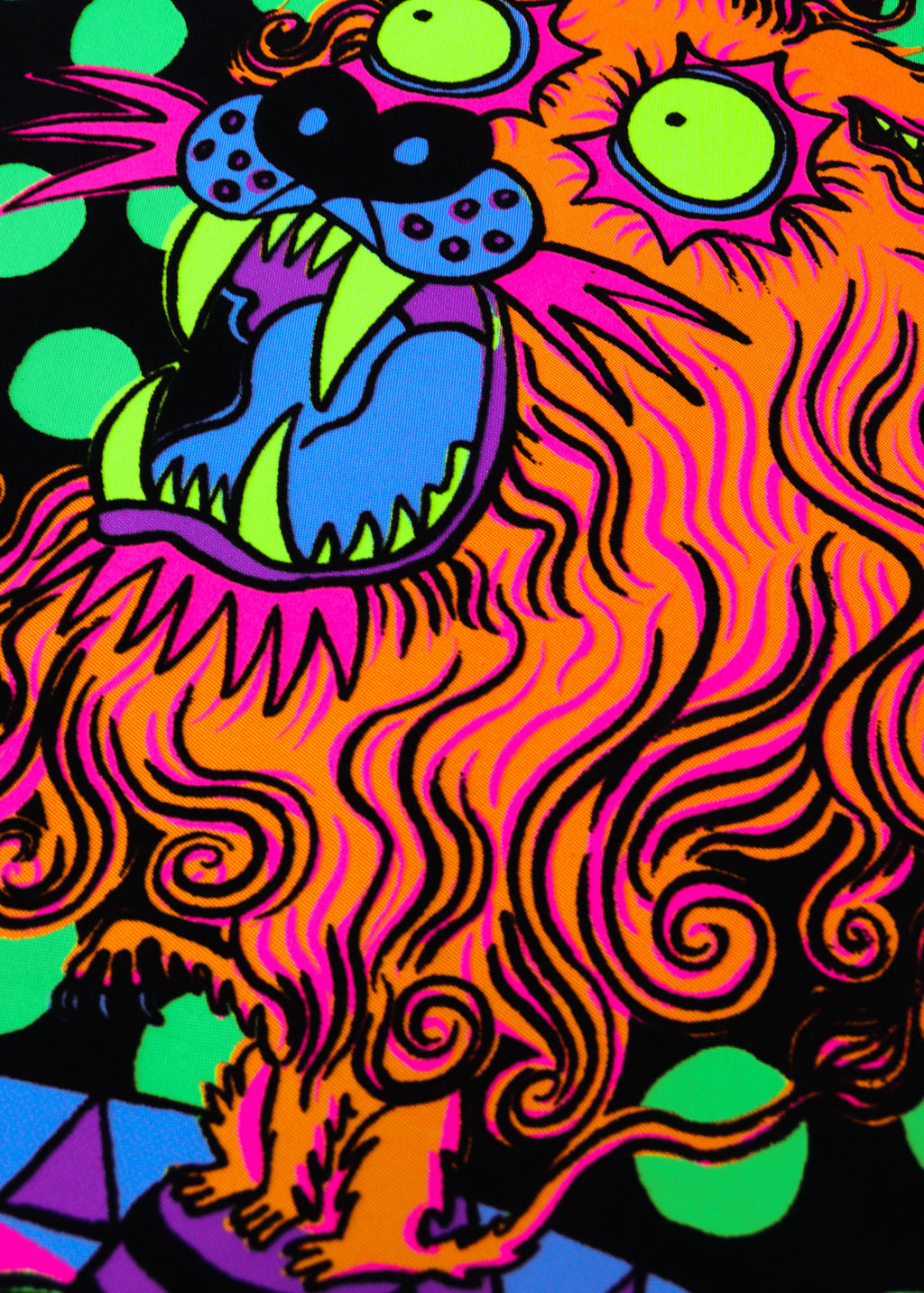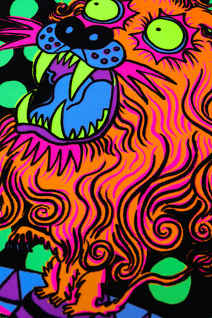 flocked velvet poster screenprinted with neon inks that fluoresce (word?) under blacklight or just pop during normal light!