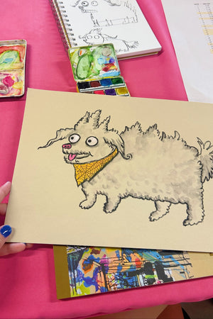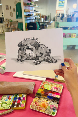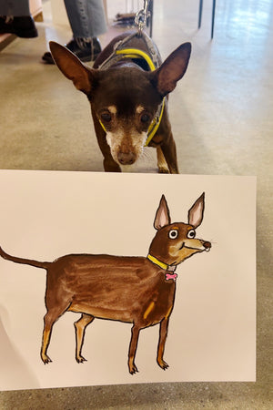 this product listing is for a one-of-a-kind drawing done by isa beniston featuring YOUR pet(s)! drawings will be done with watercolor crayon and watercolor on 9" x 12" white or kraft tan color paper.