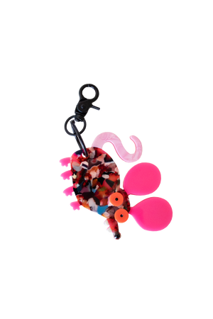 bubblegum pink lil baby mouse rat keychain on an easy-to-attach, metal keyring