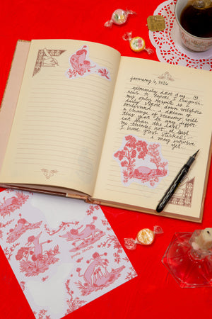 matte vinyl sticker sheet with 7 drawings of poodles experiencing ennui