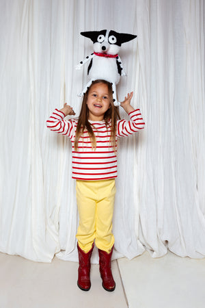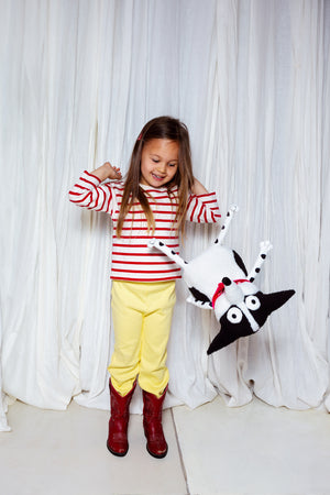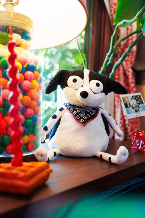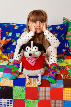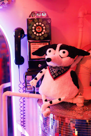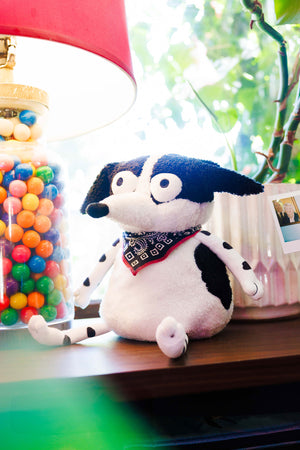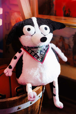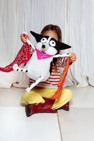 the cowgirl plushie is sewn using soft, new material and has a bottom made of beans for an extra-comforting weighty feel! each plush is also replete with a salvaged vintage bandana, thoroughly washed in los angeles and sewn in texas. bandana color will be a surprise!