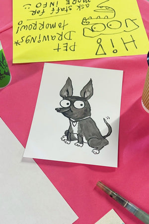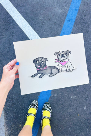 this product listing is for a one-of-a-kind drawing done by isa beniston featuring YOUR pet(s)! drawings will be done with watercolor crayon and watercolor on 9" x 12" white or kraft tan color paper.