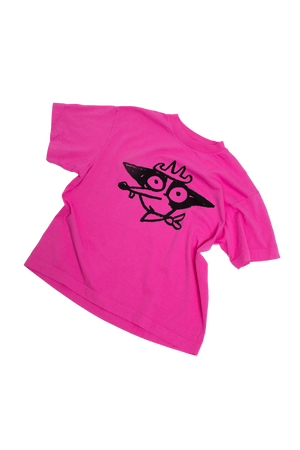 these boxy, recycled cotton tees are dyed, sewn, and printed in los angeles.