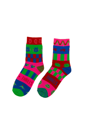 wacky crew socks $ 15.00 Default Title Quantity product successfully added to cartgo to cart sorry! there are only 168 available. please reduce the quantity before adding to your cart. Add to Cart This product is currently sold out. deliberately mismatched socks featuring some of our favorite motifs best fits women's sizes 5 through 9 made of organic cotton